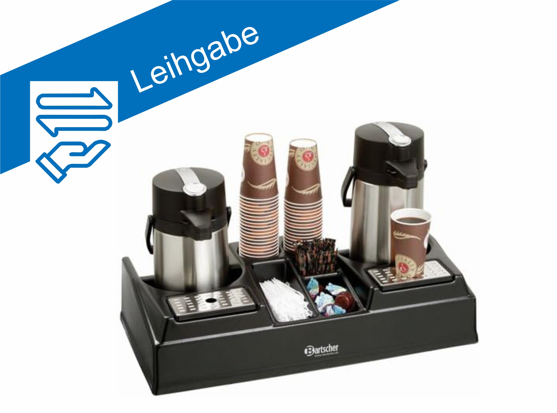 Unser Kaffeetray für Deine Veranstaltung. Er bietet Platz für zwei Pumpkannen, Einwegbecher, Stäbchen, Zucker und Kaffeesahne. Möchtest Du Deinen Kaffeetray befüllt bestellen, kannst Du dies natürlich gleich hier erledigen.